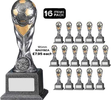 The antique silver & black plastic Eclipse football trophy retails at £6.75 each.