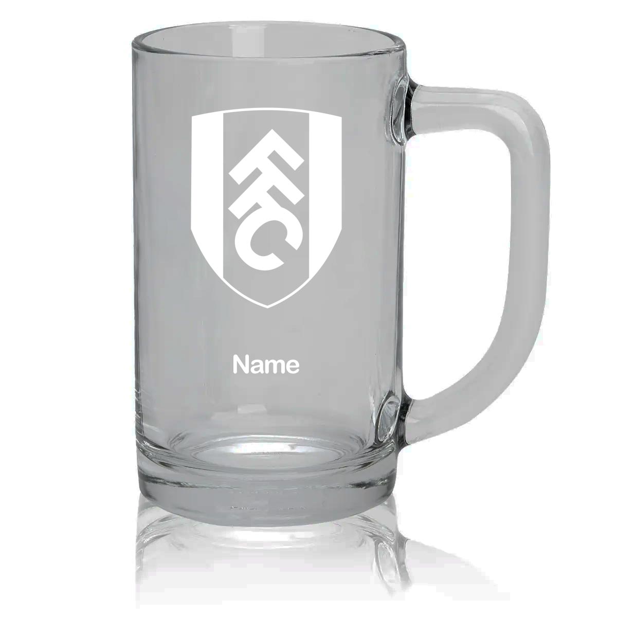 Seamless glass tankard with 440ml full beer can capacity.High-quality Fulham FC logo and your name engraved into the glass.Dishwasher safe glass engraving that does not fade or splinter.1 pint is 568ml.