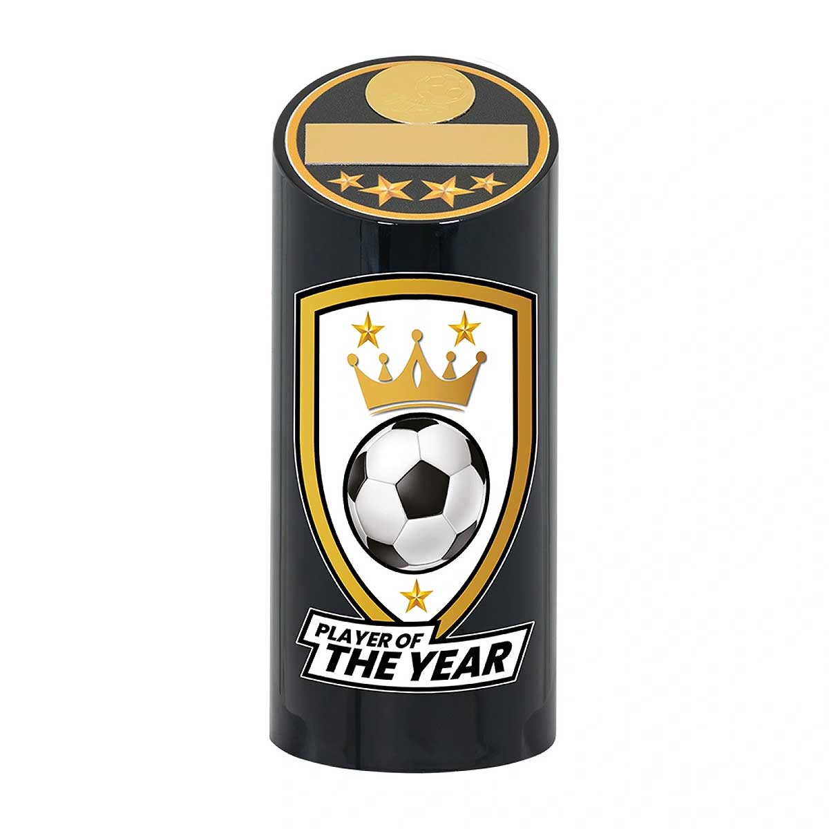 Player of the Year with gold detailed crown and shield with central football image.