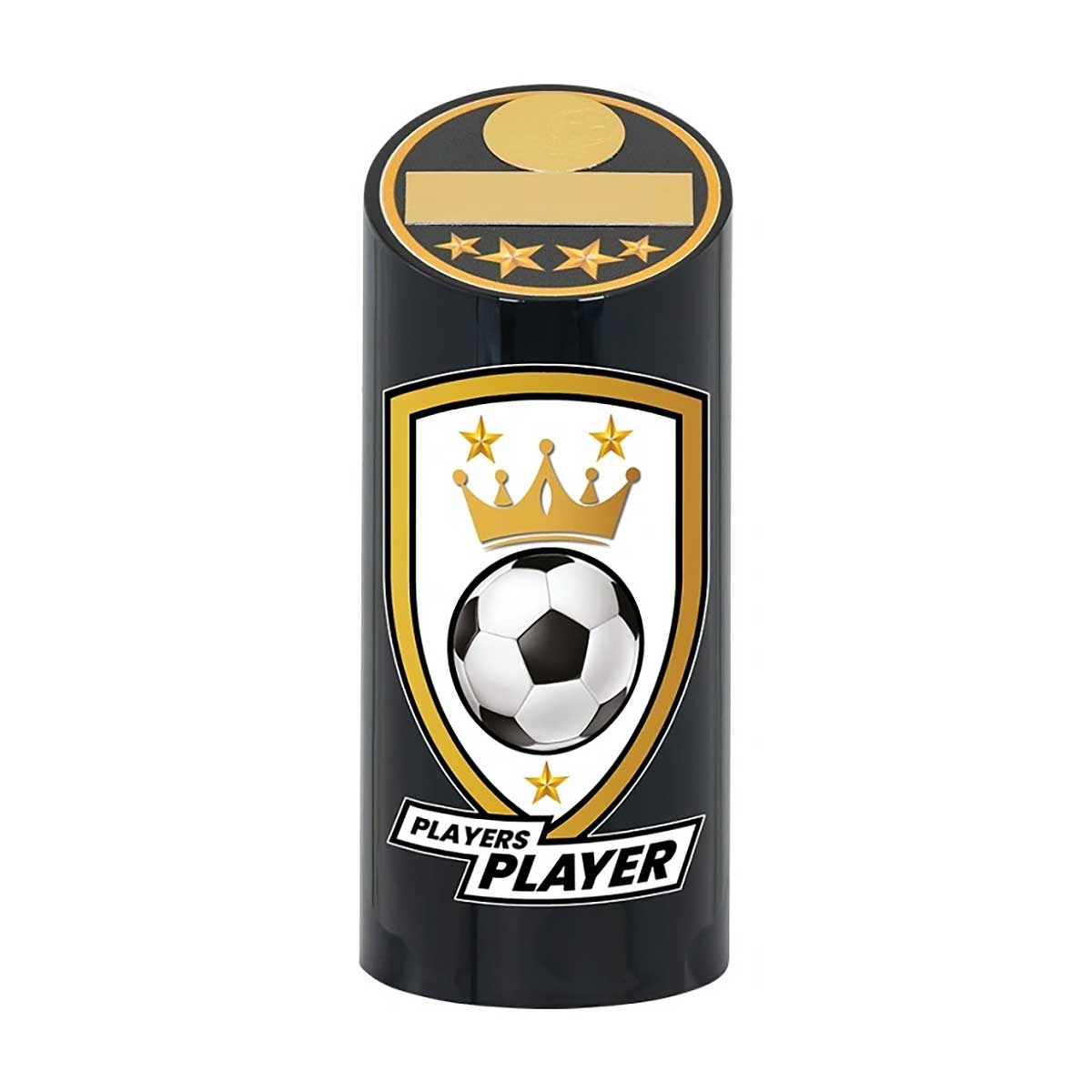 Players' Playerwith gold detailed crown and shield with central football image.