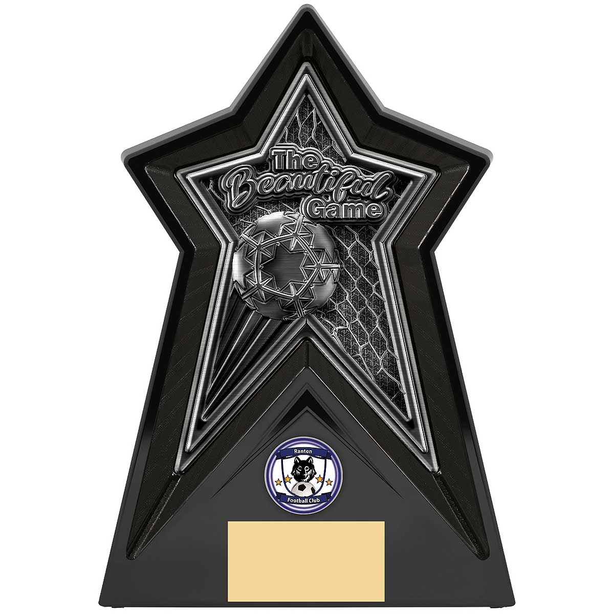20cm black Starforce stands proud and sturdy with a large star shapeHigh relief insert with The Beautiful GameEngraving plate and club logo can be applied.