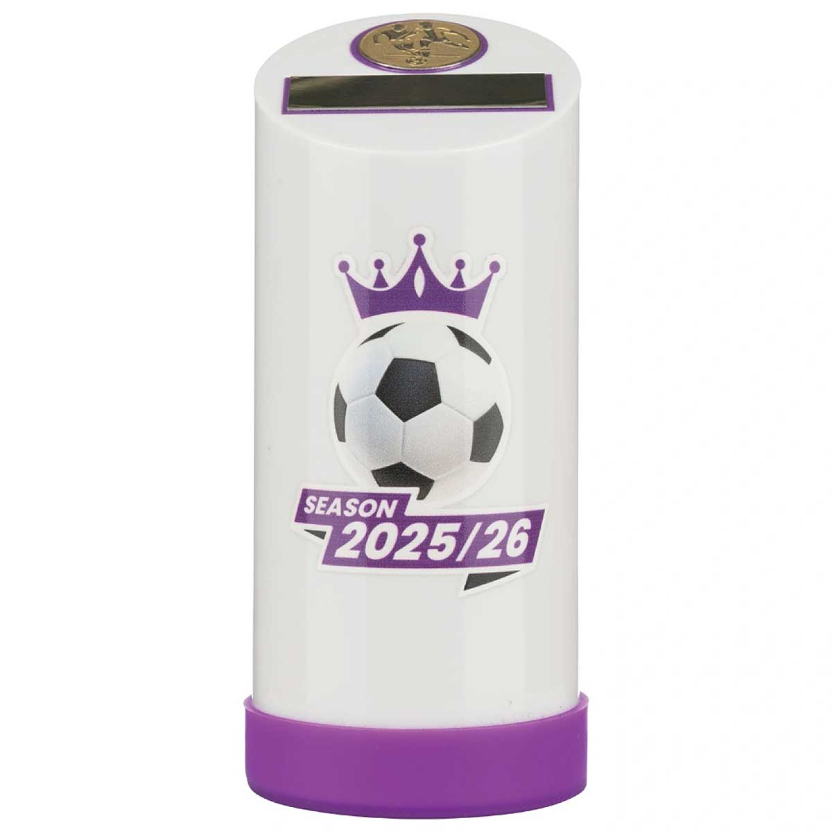 Evenly weighted coloured plastic 3D cylinder with angled top in blue, green, orange, pink, red, yellow, and white to match your club colours