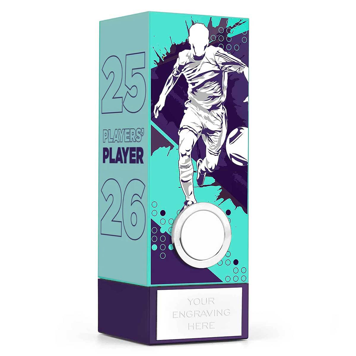 Teal Geo Block 6cm square plain plastic column, 17cm tall. Weighted 0.6kg black base to give it a quality feel with felt foot.Comes with Male Players' Player highlight panels