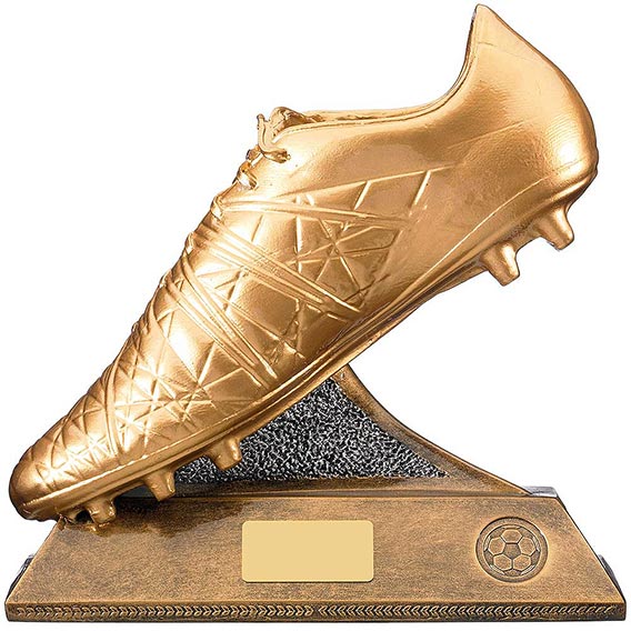 Golden Boot award 20.5cm highFeatures detailed bright gold boot on a contrasting antique gold and antique silver baseEngraving plate and club logo can be applied to front