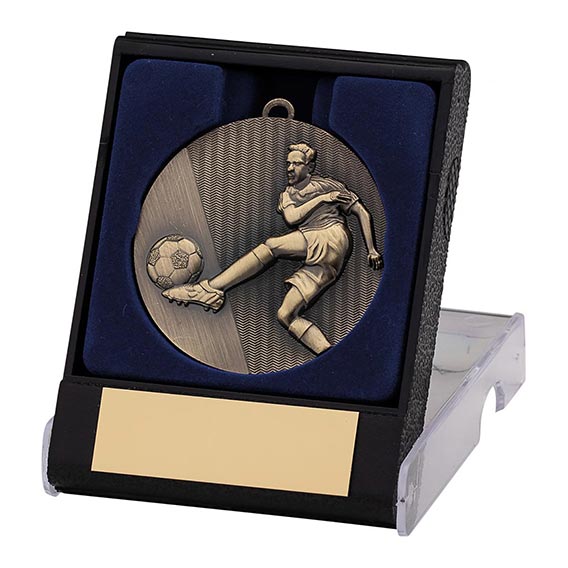 Home Football Medals Football Medals in Cases Bronze Striker and Ball Medal in Box 50mm