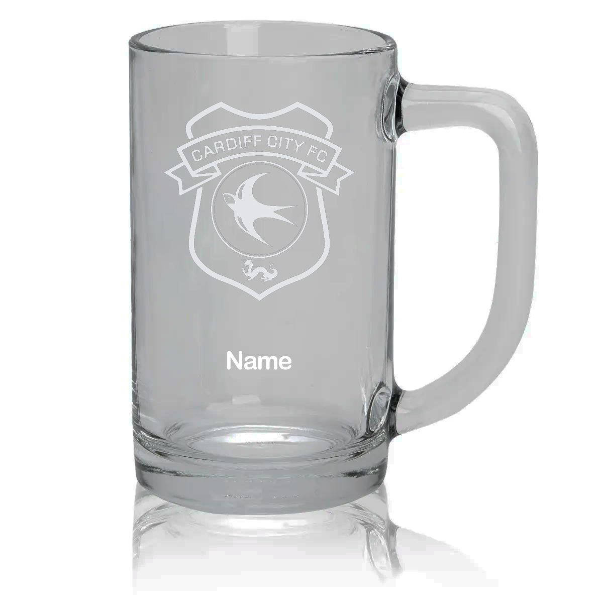 Seamless glass tankard with 440ml full beer can capacity.High-quality Cardiff City FC logo and your name engraved into the glass.Dishwasher safe glass engraving that does not fade or splinter.1 pint is 568ml.