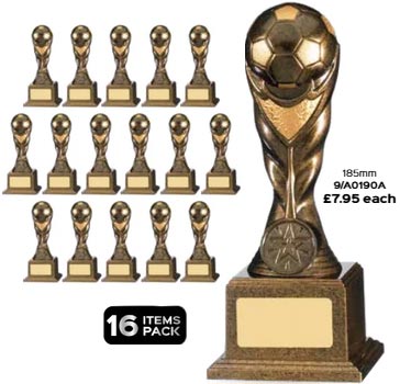 The antique gold & black plastic Eclipse football trophy retails at £6.75 each.