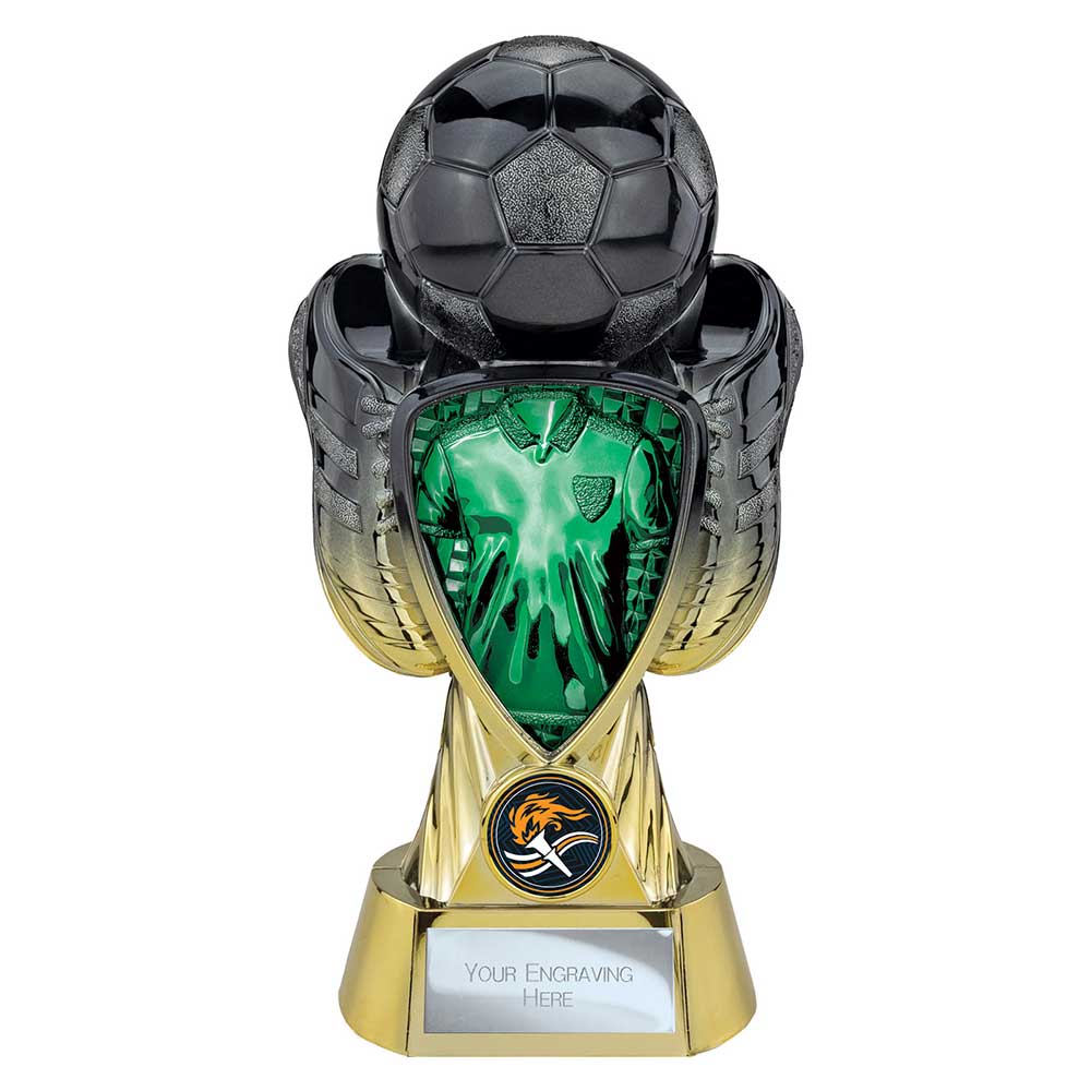 Home Football Trophies Tournament Colour Shirts Green Shield Gold Tournament Trophy 220mm