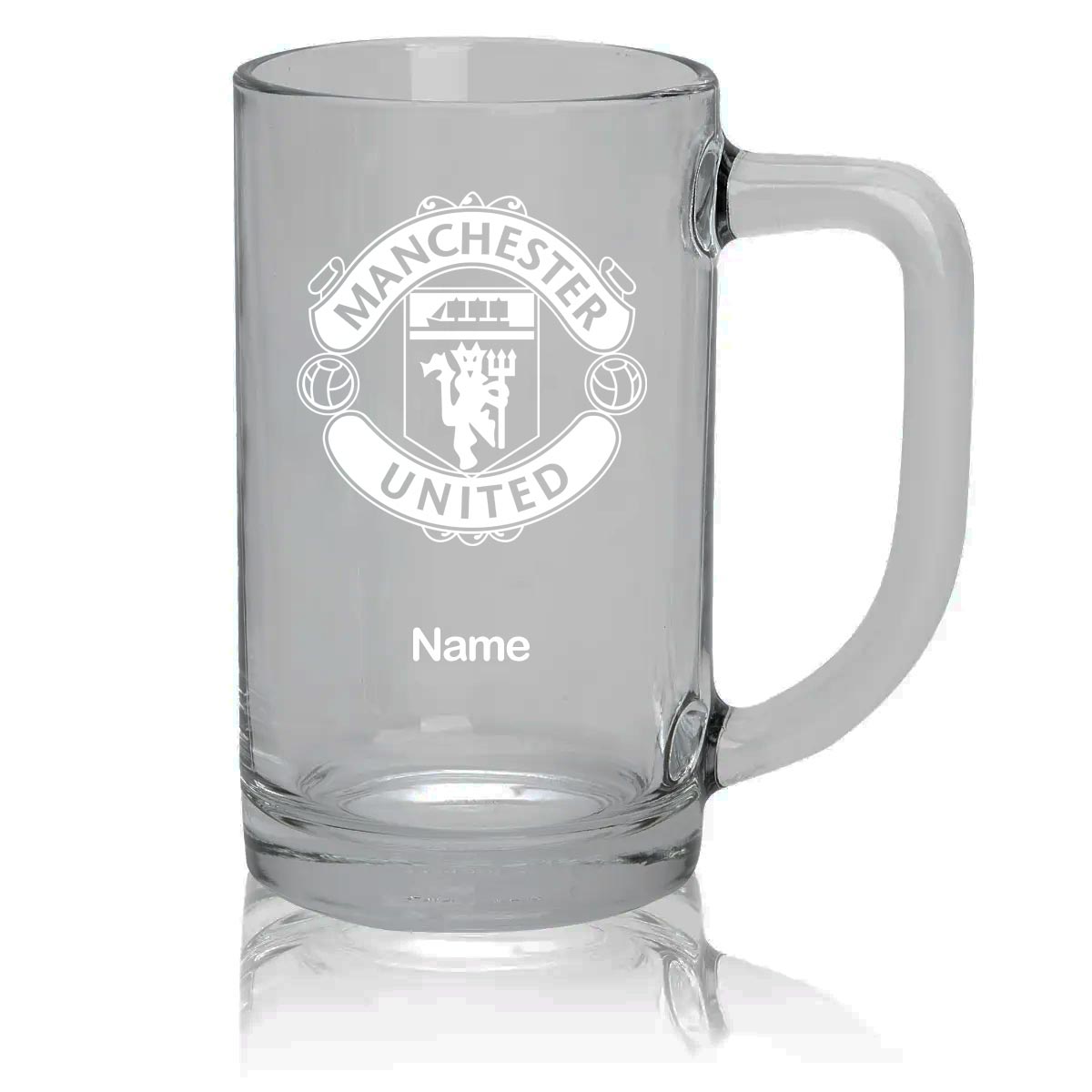 High-quality Manchester United FC logo and your name engraved into the glass.
