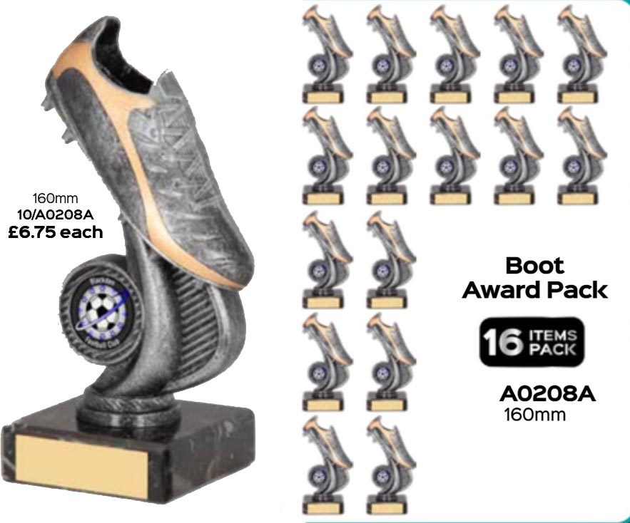 The antique silver & gold plastic boot trophy retails at £6.75 each.