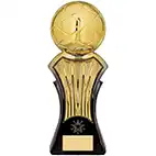 Strike Force Metallic Gold Football Trophy. Stands 16cm tall on a black and gold column. Engraving plate and club logo can be applied.